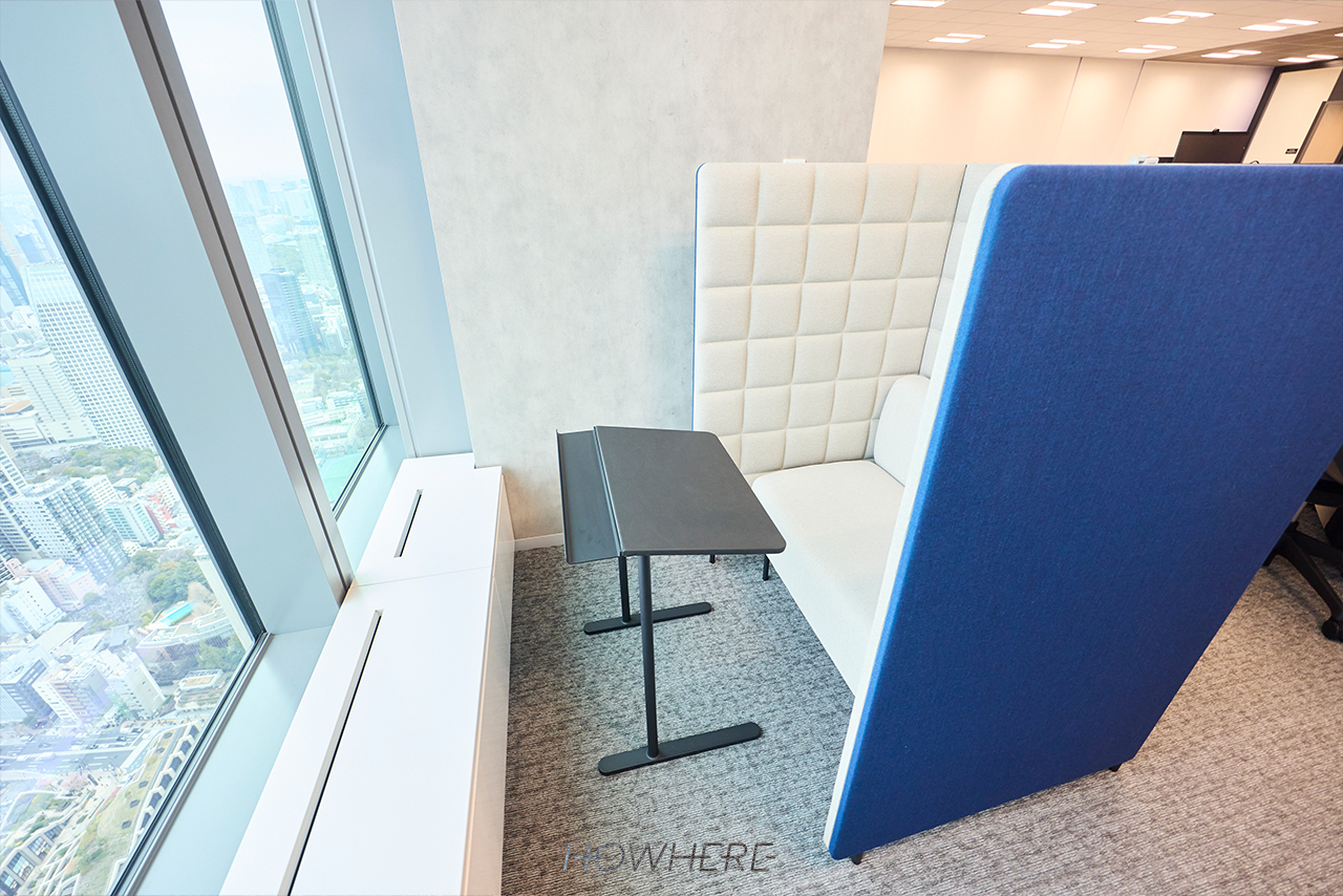 衣笠:移転直後に行動分析を実施し、いくつかの課題も見えてきています。コミュニティエリアが、当初想定していた他部署の人との雑談やランチの場としてはまだ十分に機能していなかったり、窓向きの一人用ブースが音漏れの問題から使いにくいという声が上がっていたりします。仕切りのカーテン一つをとっても「不要」という意見と、「他の場所にも設置してほしい」という意見が混在しており、さまざまなフィードバックが集まっている状況です。