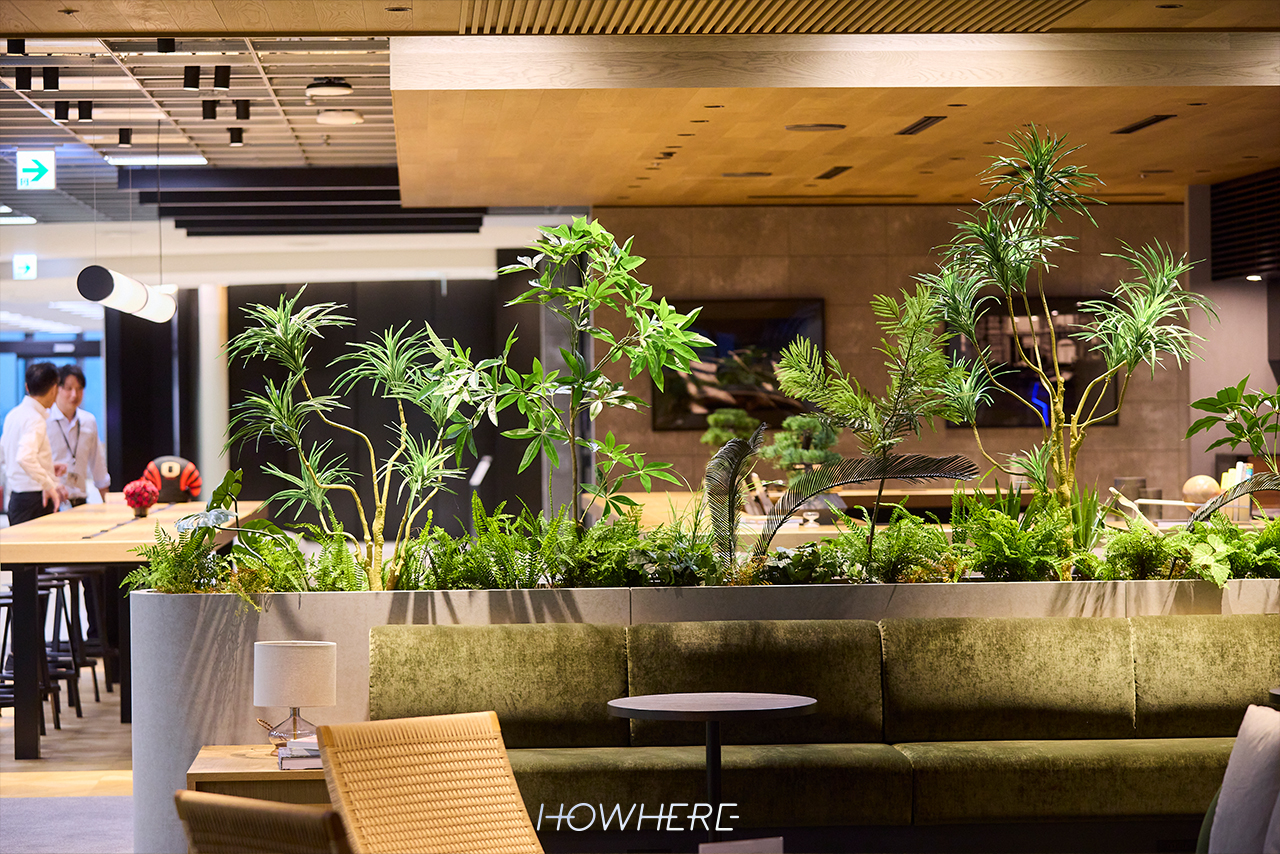 もう一つ、職場の特徴として挙げたいのは、オフィスDXとITツールの活用です。顔認証による入退室管理や、Microsoft 365と連携した会議室予約システム、モバイルバッテリーの常備など、デジタルツールを積極的に導入し、業務の円滑化と利便性向上を図りました。そのほか、社員同士の交流を図るためのオープンな共用スペースも設けています。