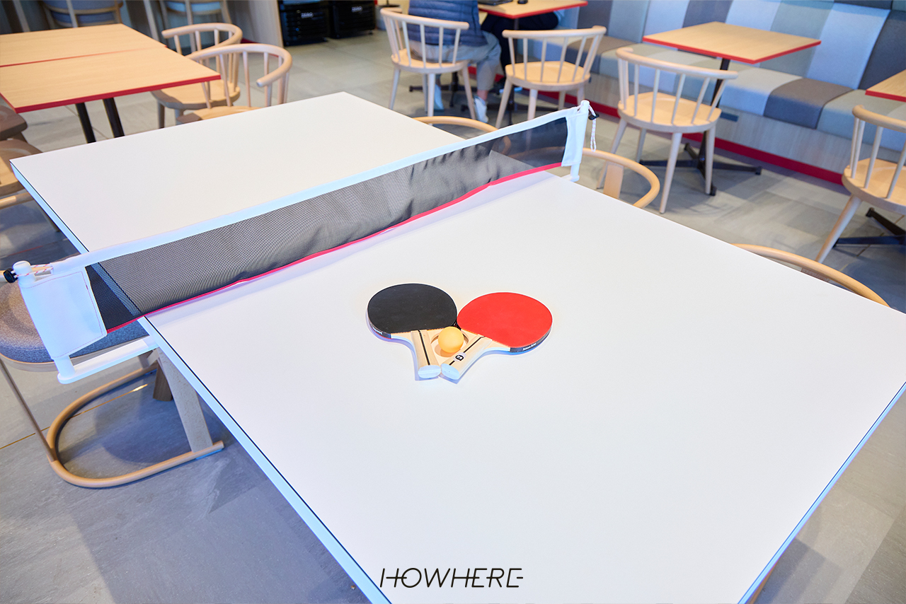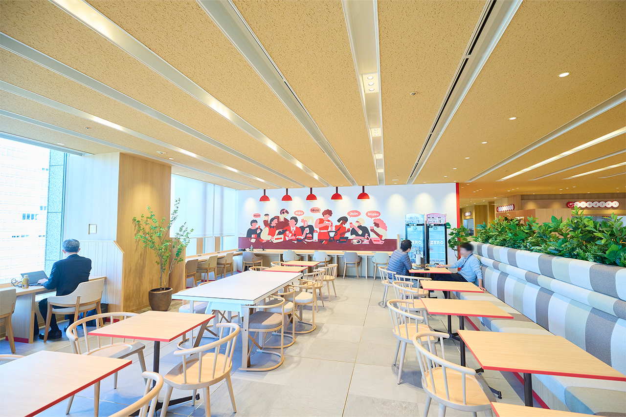 社員食堂では、食事時間以外の利用が大幅に増えました。ファミレス席で打ち合わせをしたり、リラックスエリアで個人作業をしたりする姿がよく見られます。