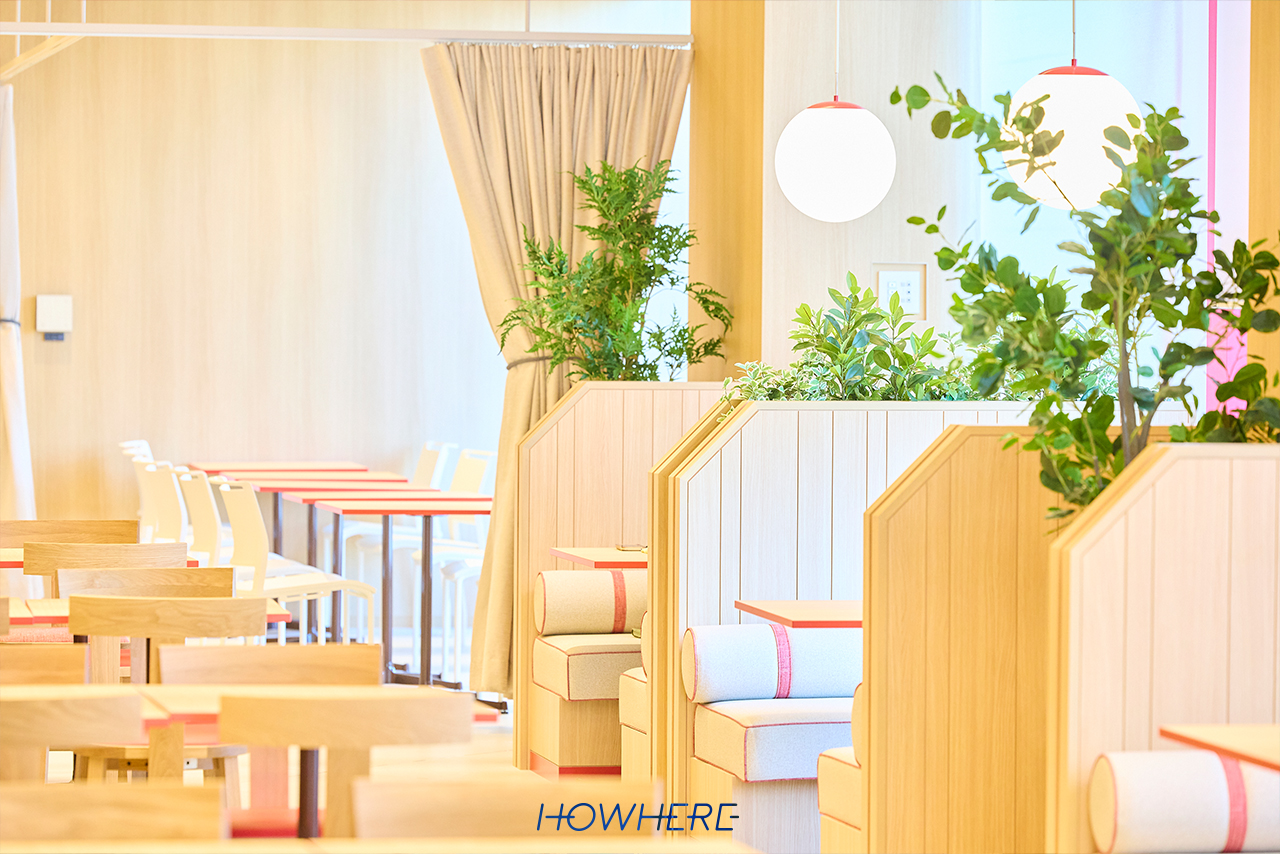 さらに、企業カラーの赤と木目を基調とした食堂全体のデザインも温かい雰囲気を醸し出しており、このように社員の思いが反映された空間であれば、日々の業務にも自然と前向きな気持ちで向き合えると感じました。